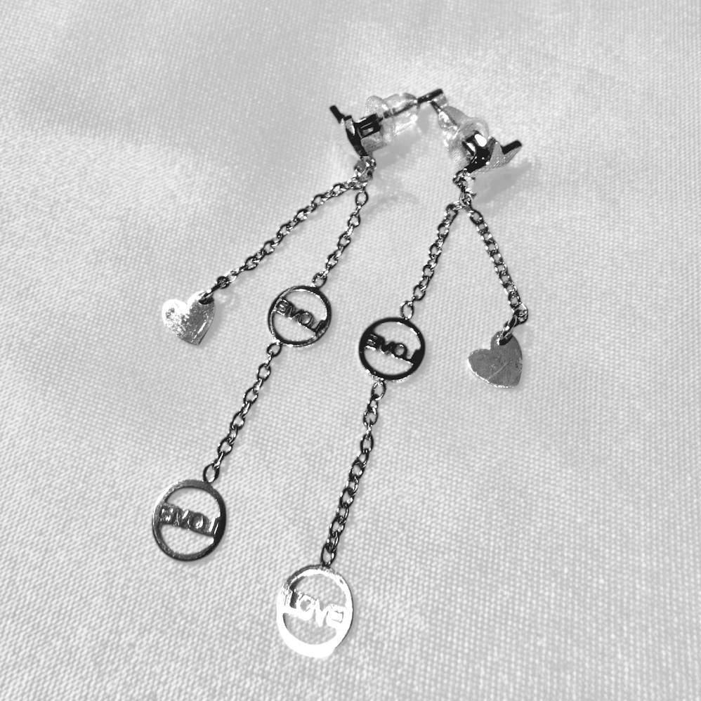 En finition argentée polie, elles capent délicatement la lumière et encadrent le visage d’une élégance tendance. Réalisées en acier inoxydable, elles résistent au temps et à l’eau tout en conservant leur éclat. Le design propose de fines chaînes en cascade, terminées par un petit cœur et un médaillon ajouré portant le mot "LOVE", pour une touche romantique et audacieuse. Parfaites pour sublimer aussi bien une tenue du quotidien qu’un look plus habillé.